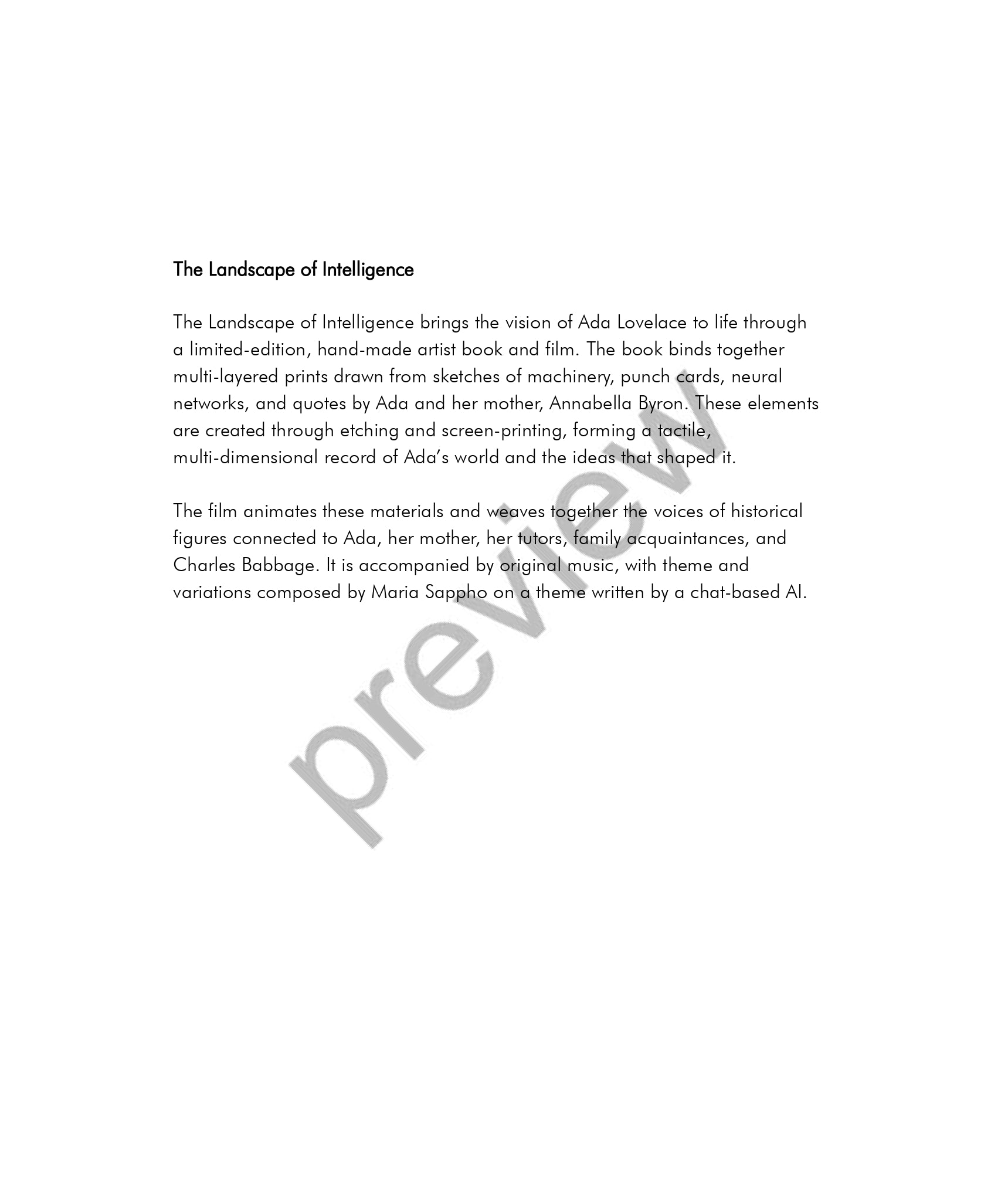 The Landscape of Intelligence - Tribute to Ada Lovelace - Artist Booklet